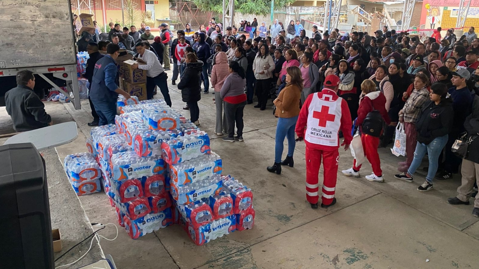 Esta acción solidaria fue posible gracias a la colaboración de trabajadores de la Fábrica de Jabón Corona, quienes donaron 360 despensas, además de agua purificada embotellada, sumándose al esfuerzo permanente que encabeza la Cruz Roja para atender a la población más vulnerable.