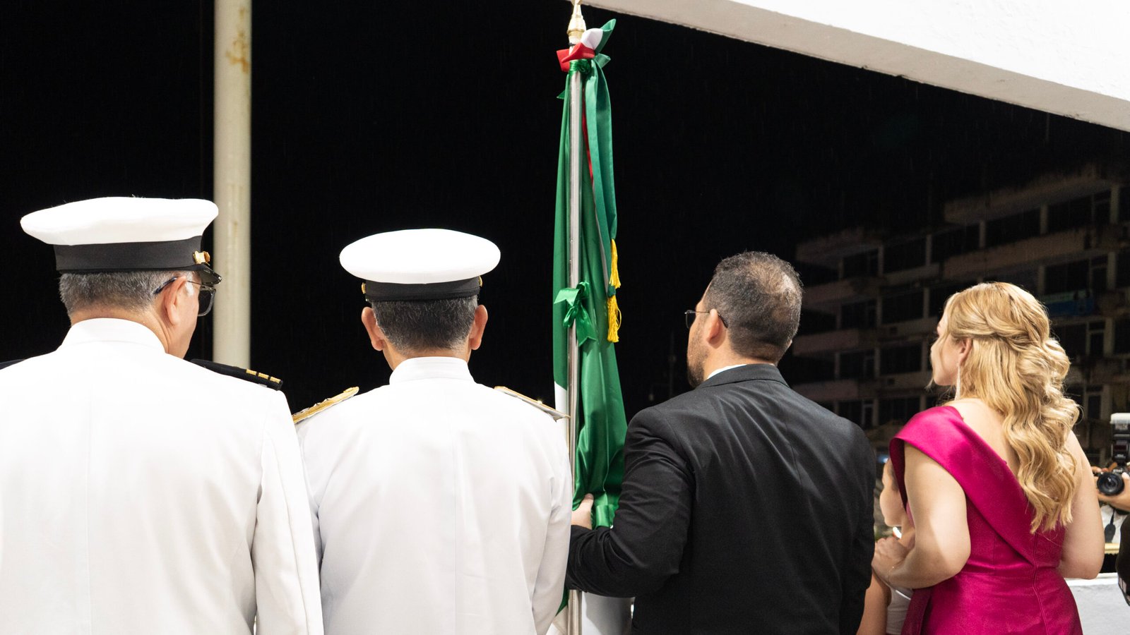 El alcalde estuvo acompañado por su esposa la Q.I. Melba López Gutiérrez, presidenta del DIF Tuxpan; el Lic. Daniel Cortina Martínez, diputado local por el tercer distrito; el vicealmirante C.G. DEM: Miguel Ángel García Portillo, comandante de la Fuerza Naval del Golfo; el contralmirante AN. PA. DEM. José Hermilo Cuervo Salas, comandante del Sector Naval de Tuxpan.