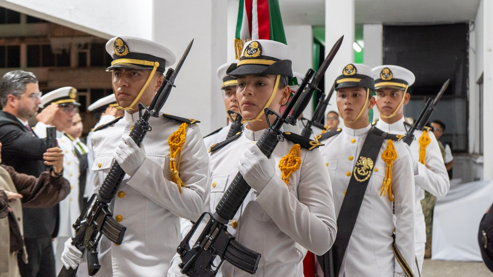Es importante destacar la participación de la Banda de Guerra de la 19ª Zona Militar y de la escolta de la Semar en esta ceremonia.